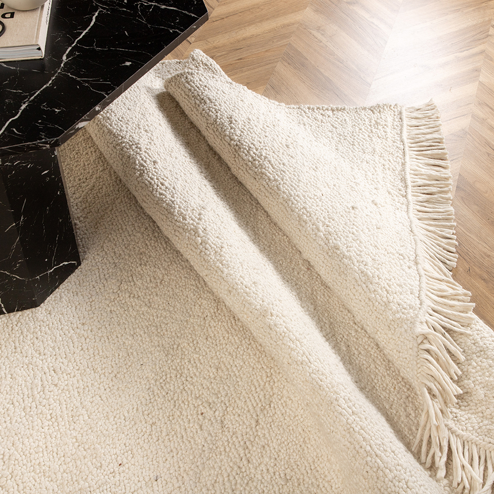Matta Betina i handvävd brun ull är en modern matta som passar i de flesta rum. Material: 89% Ull 11% Polyester.