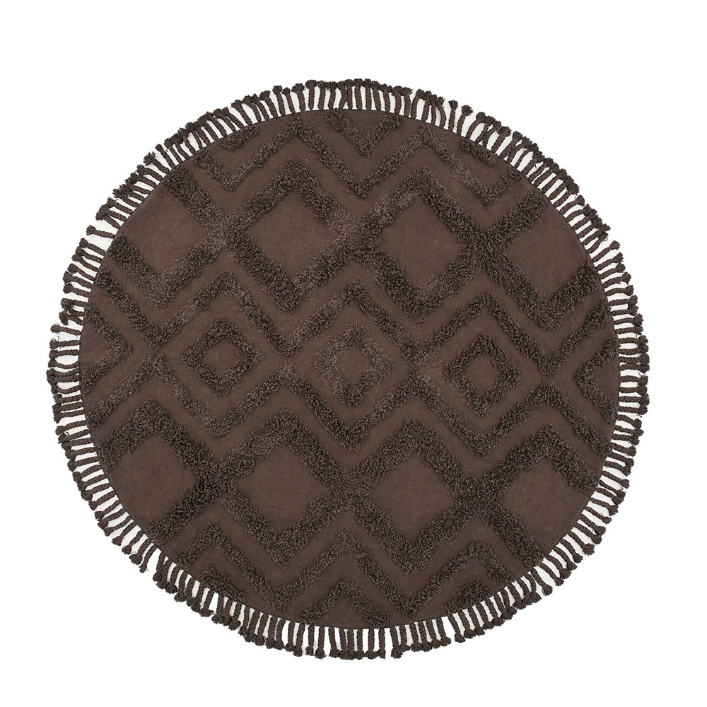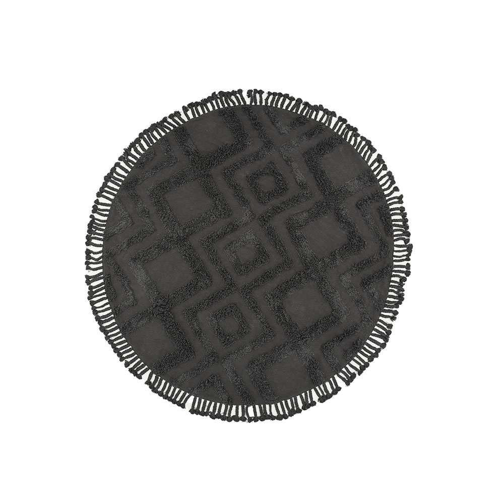 Den här runda mattan har ett tuftat mönster som ger en läcker struktur och dimension till mattans utformning.