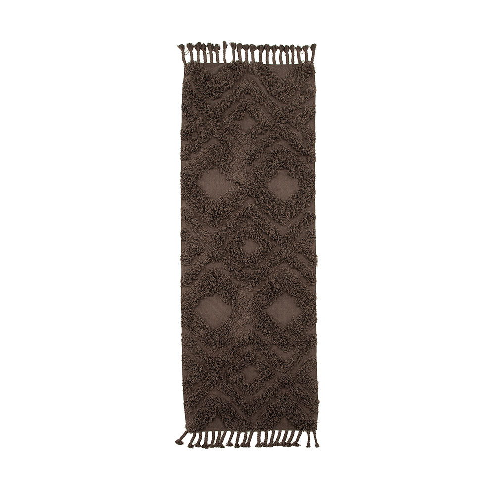 Höj stilnivån i ditt hem med en mysig och modern matta som snabbt ger en värmande känsla till inredningen! Mattan har ett tuftat mönster i högre lugg och en flätad frans rad längs kortsidorna som bidrar till en klassisk design i kombination med det trendiga. De slitstarka egenskaperna hos materialet gör att mattan fungerar utmärkt i de flesta rum. Placera solitär i hallen eller i vardagsrummet för att lyfta stilnivån några steg!