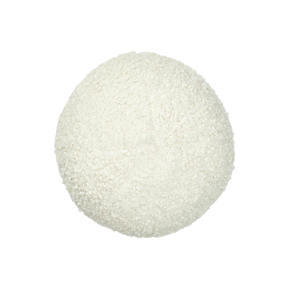 Bollformad kudde med mjukt flossat tyg. 30cm i diameter. Formen gör den lättplacerad och fyllningen ger bra stöd. Produkten är certifierad enligt STANDARD 100 by OEKO-TEX®. Certifieringen garanterar att produkten är testad och fri från ämnen som kan vara skadliga för hälsan och miljön.