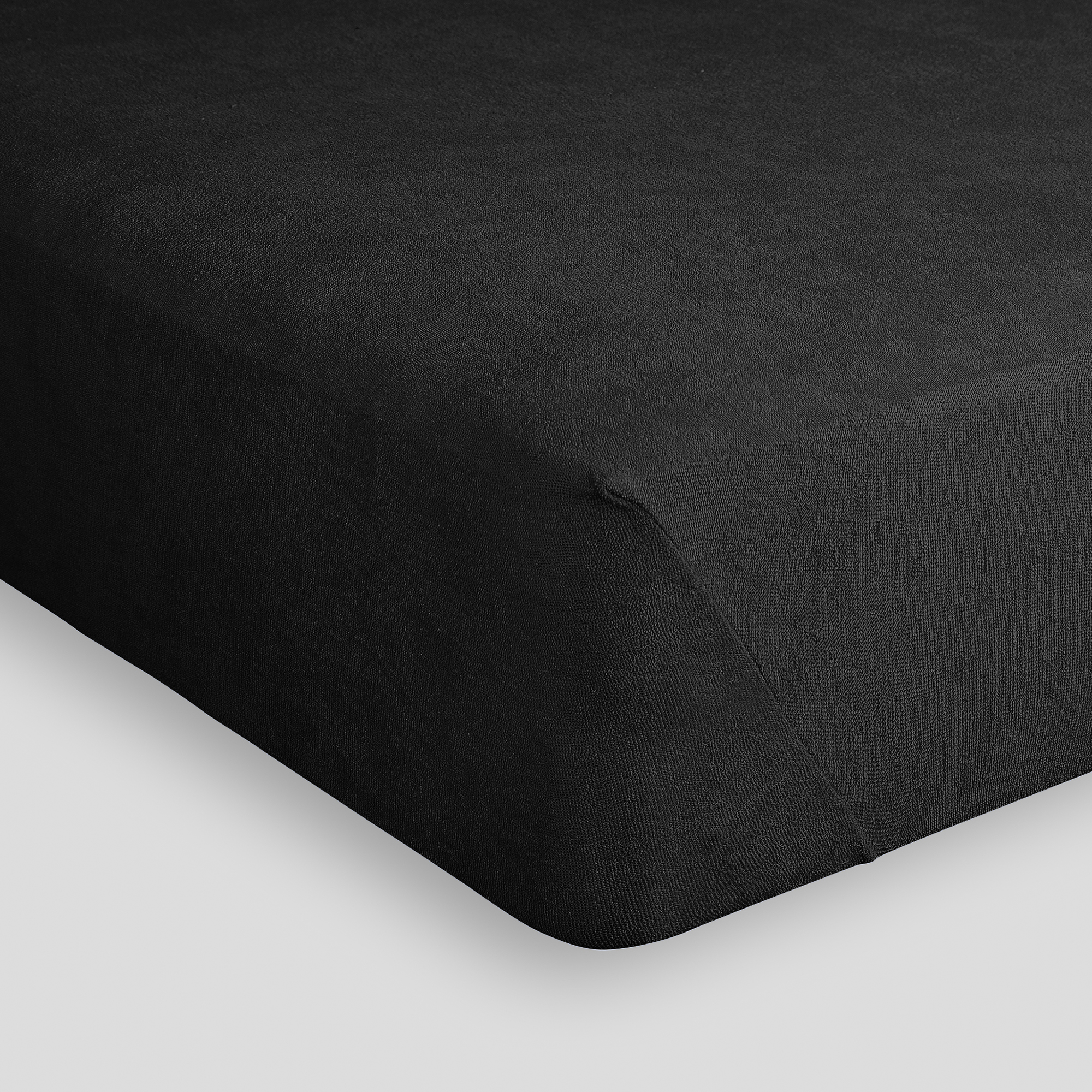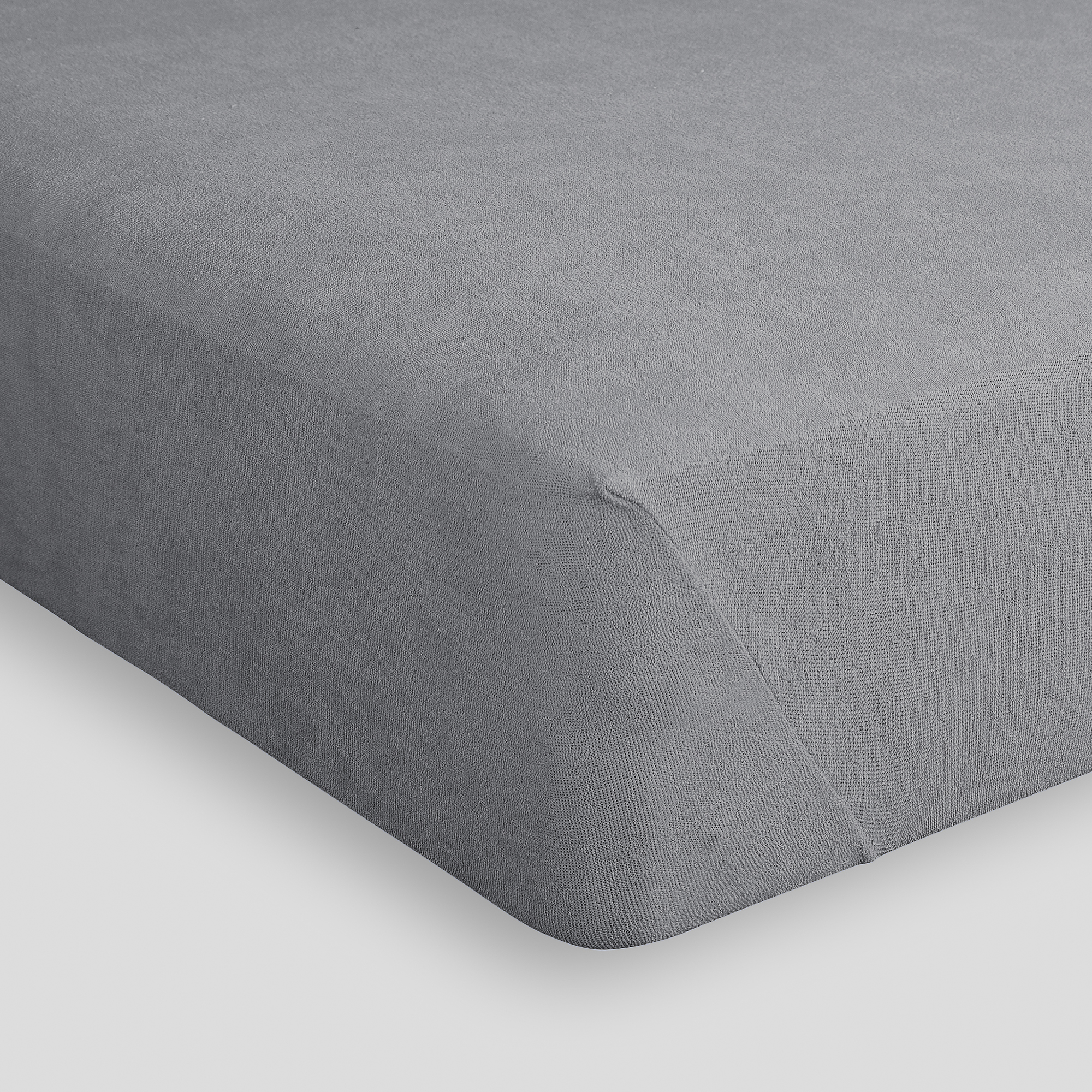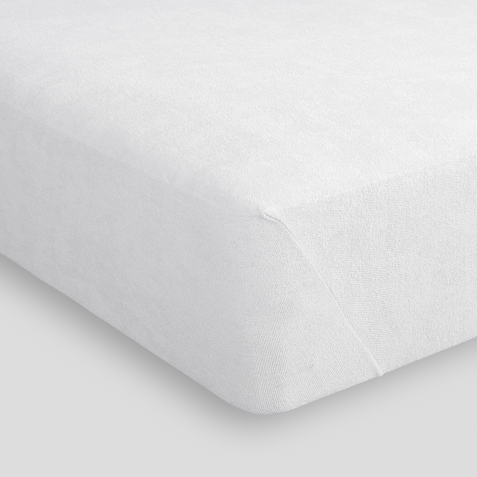 Sängtopp i stretchfrotté med sydda hörn, knytband och resår runt om.