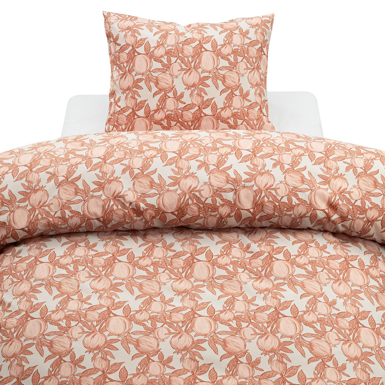 Borganäs bäddset med granatäpple-mönster. Ett påslakan (150x210 cm) och ett örngott (50x60 cm), tillverkat av 100% bomull.