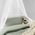 Bäddset bestående av ett örngott och ett påslakan med en krinklad framsida och slät baksida. Tillverkade i fin bomullspercale som känns svalt och skönt att sova i. Passande storlek för spjälsäng.