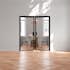 Pardörr Hietakari Bläk 775 New York är symmetriska pardörrar i glas med aluminiumram.