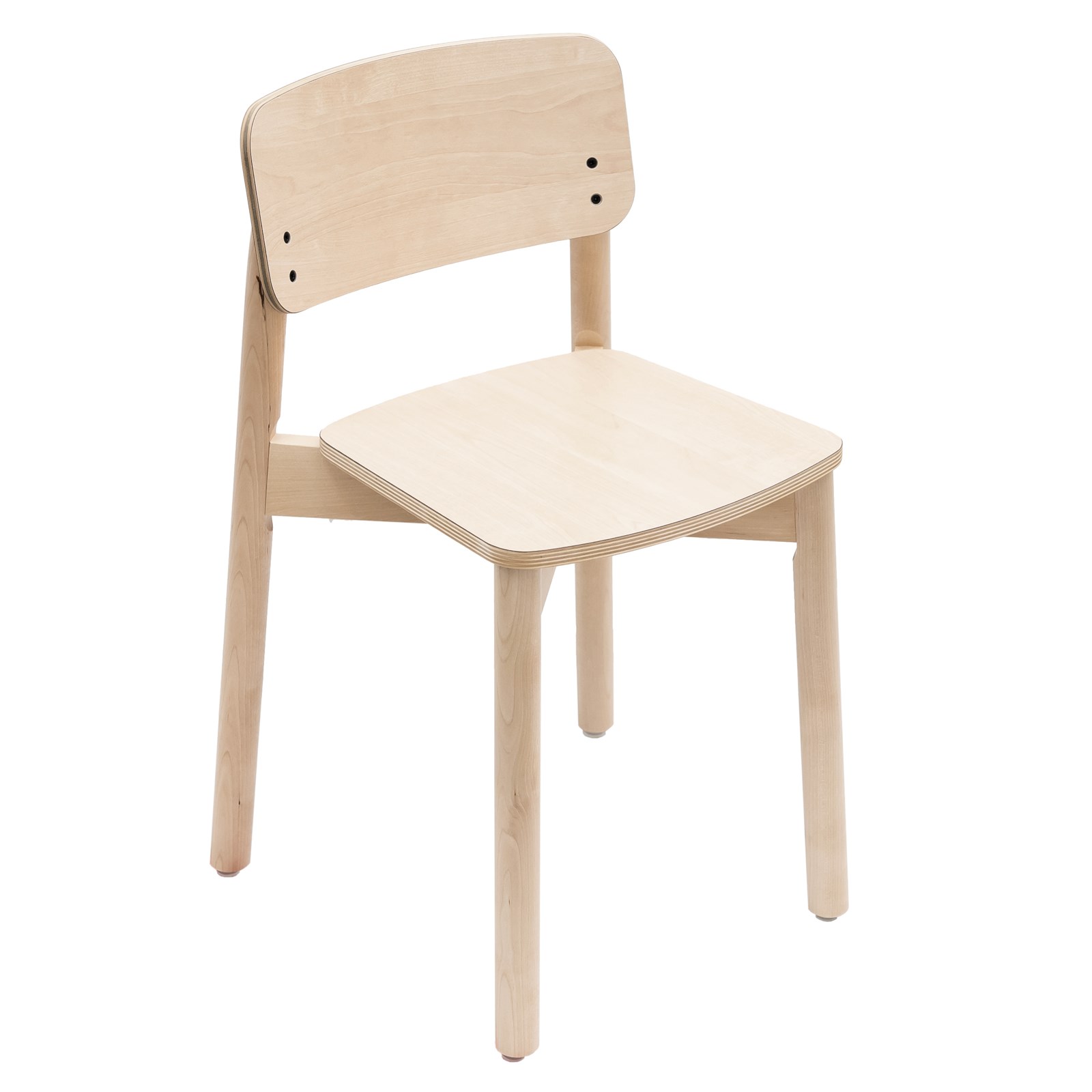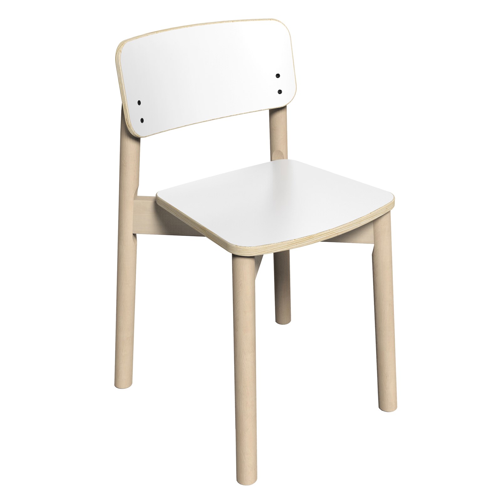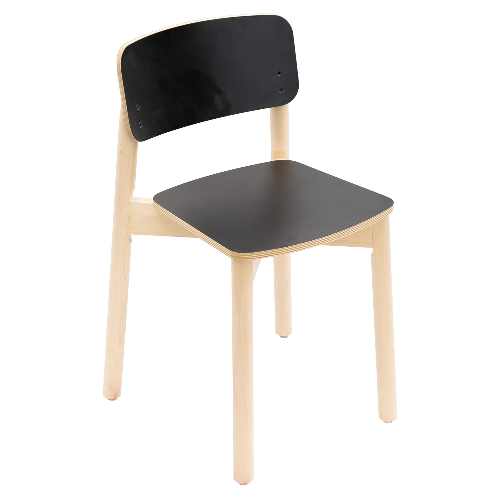 Barnstol Fanny från ABA Skol. Stomme i trä med sits- och ryggplatta i laminat. Godkänd enligt gällande EN-standard. Stapelbar. Filttassar medföljer.