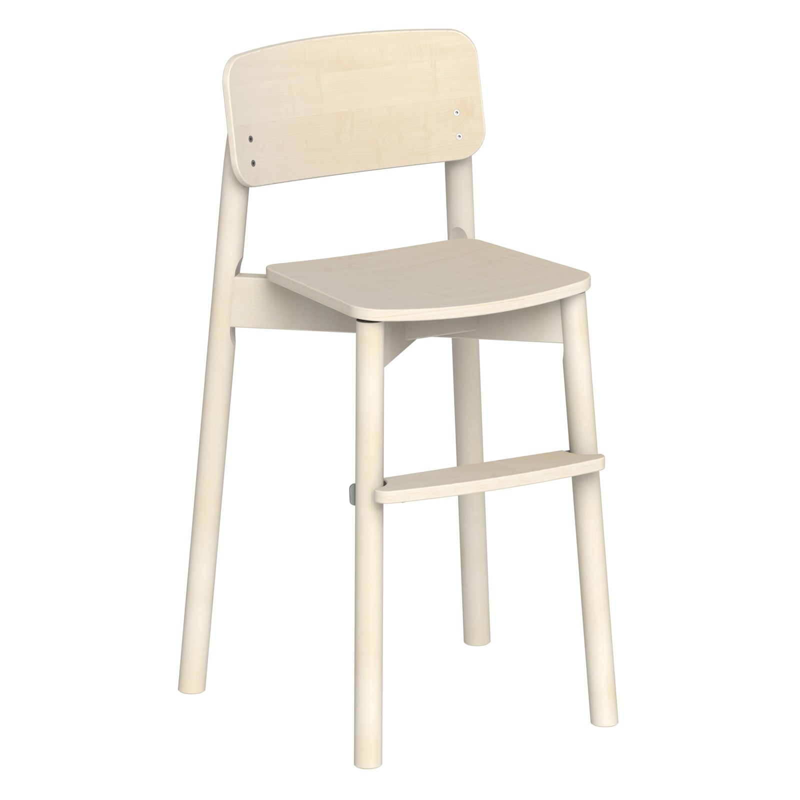 Barnstol Fanny från ABA Skol. Stomme i trä med sits- och ryggplatta i laminat. Godkänd enligt gällande EN-standard. Stapelbar. Filttassar medföljer.
