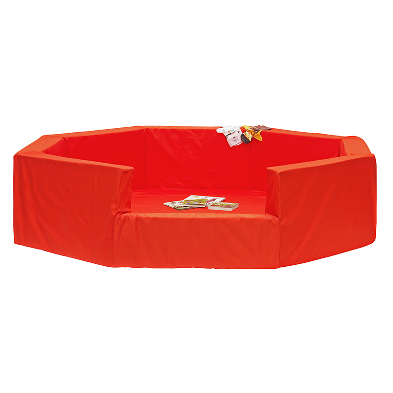 Mysgrop Milo från ABA Skol med plats för 12-14 barn. Tillverkad i Oeko-Tex godkänd bomullstyg och polyeter. Sargen har tjocklek 15 cm. Bottendelen är 10 cm tjock. Avtagbar klädsel. Tvättbar i 60°. Levereras i två delar.
