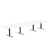 Båtformat konferensbord för cirka 14 personer. Bordet har en stilren design med rektangulärt T-stativ och finns med flera sorters bordsskivor och i tre stativfärger. Bordshöjden kan ställas in manuellt så arbetshöjden kan justeras om det behövs.
