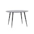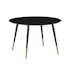 Dipp från Venture Home är ett runt matbord med stomme och ben i pulverlackerad metall. Bordsskivan är i MDF.