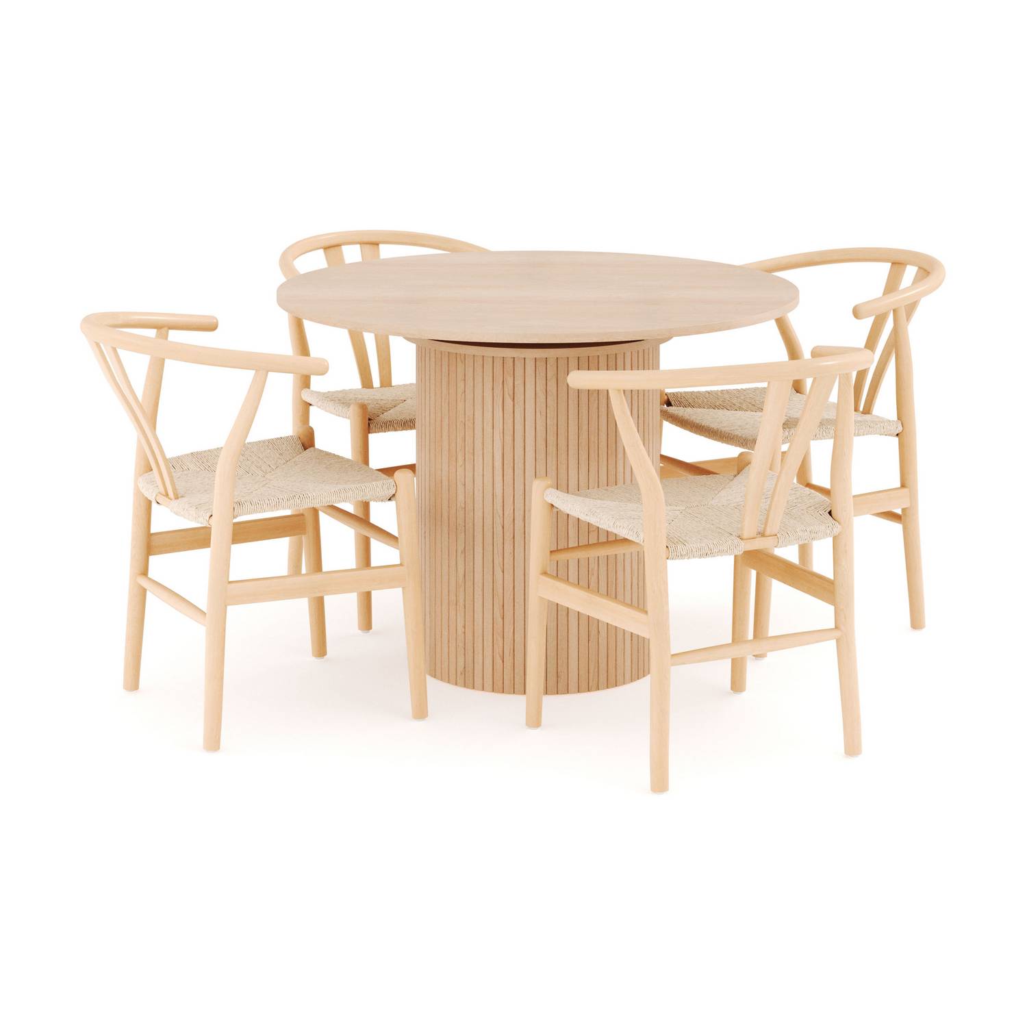 Matgrupp Kopparbo från Bark. Med detta matbord i träfanér kan hela familjen samlas kring en vacker och stilren möbel som passar perfekt i alla moderna hem. Den runda formen gör att alla får plats runt bordet och dess eleganta design gör den till ett imponerande inslag i ditt hem. Bordet är tillverkat av högkvalitativ träfanér vilket ger det en fräsch och tidlös look. Det perfekta valet för dig som söker en snygg möbel att samla vänner och familj kring.