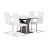Matgruppen har en stilren design i vit färg, vilket ger en modern och fräsch känsla. Stolarna är tillverkade i svart läder och har en bekväm sits som gör att du kan sitta bekvämt under långa middagar. Bordet är förlängningsbart, vilket innebär att du enkelt kan anpassa det efter dina behov. Oavsett om du har gäster eller behöver mer utrymme för matlagning kan du skapa extra plats med några enkla steg.