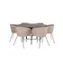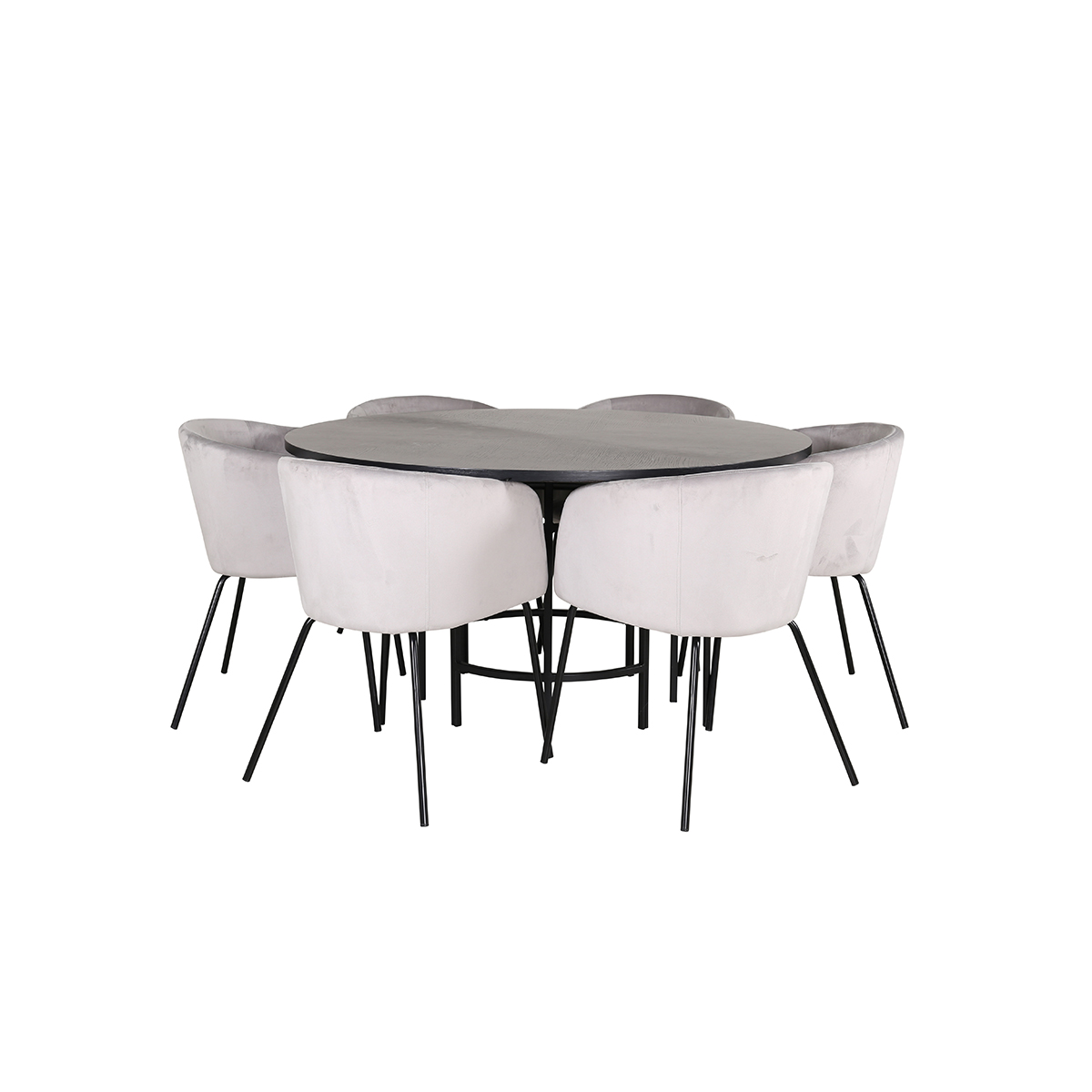 Matgrupp furniture/fashion Copenhagen med 6 Berit Stolar Sammet har ett runt matbord i MDF med faner med bordsben i metall. Det ingår 6 st Berit matstolar med stolsben i järn och sitsar i sammet.
