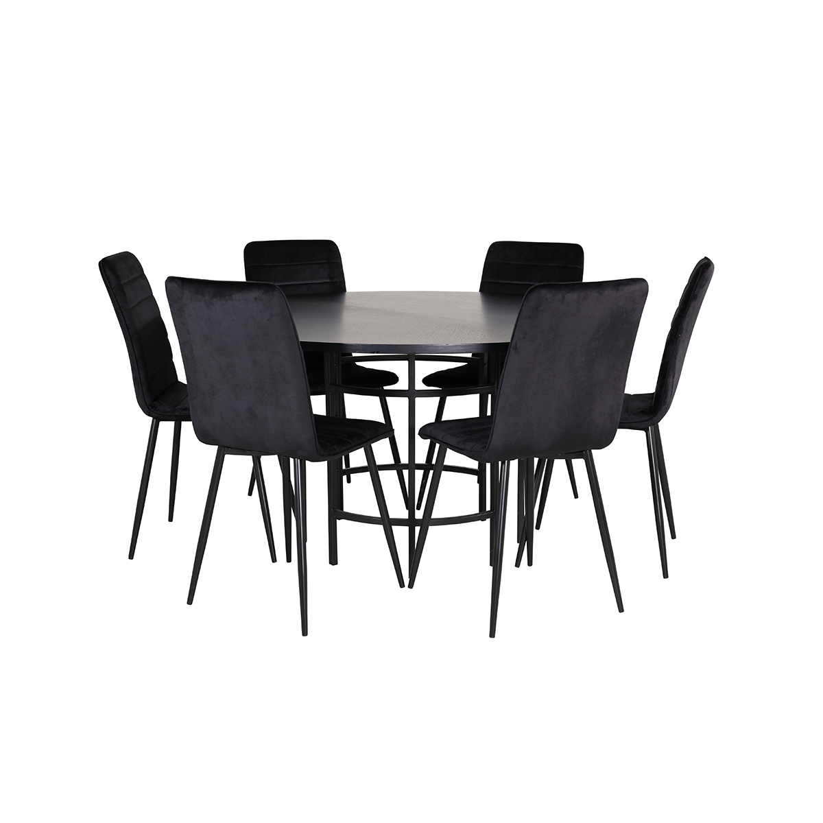 Matgrupp furniture/fashion Copenhagen med 6 Windu Stolar Mikrofiber har ett runt matbord i MDF med faner med bordsben i metall. Det ingår 6 st Windu matstolar med stolsben i järn och bruna sitsar i mikrofiber.