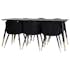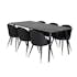 Matgrupp Venture Home Dipp med 6 Velvet Stolar Sammet är en elegant matgrupp med ett svart bord och sex stycken stolar med svarta ben med vackra detaljer.