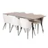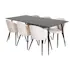Matgrupp Venture Home Silvia med 6 Valentina Stolar Sammet är en stilren matgrupp med ett matbord i MDF och svarta bordsben i metall. Det medföljer sex matstolar med svarta stolsben i metall och sitsar i sammet.