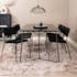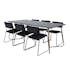 Matgrupp Annika från Venture Home. Med ett matbord i svart MDF med faner med svarta bordsben i järn. Matchas med 6 st Kungshamn matstolar med svarta stolsben i järn och svarta sitsar i sammet.