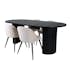 Matgrupp Bianca från Venture Home. Med ett ovalt matbord i MDF med faner med bordsben i trä och MDF. Matchas med 4 st Valentina stitcthes matstolar med dekorsöm och med svarta stolsben i järn och beigea sitsar i sammet.