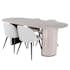 Matgrupp Bianca från Venture Home. Med ett ovalt matbord i benvit MDF med faner med benvita samt svarta bordsben i trä och MDF. Matchas med 4 st Valentina matstolar med svarta stolsben i metall och beigea sitsar i manchester .
