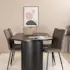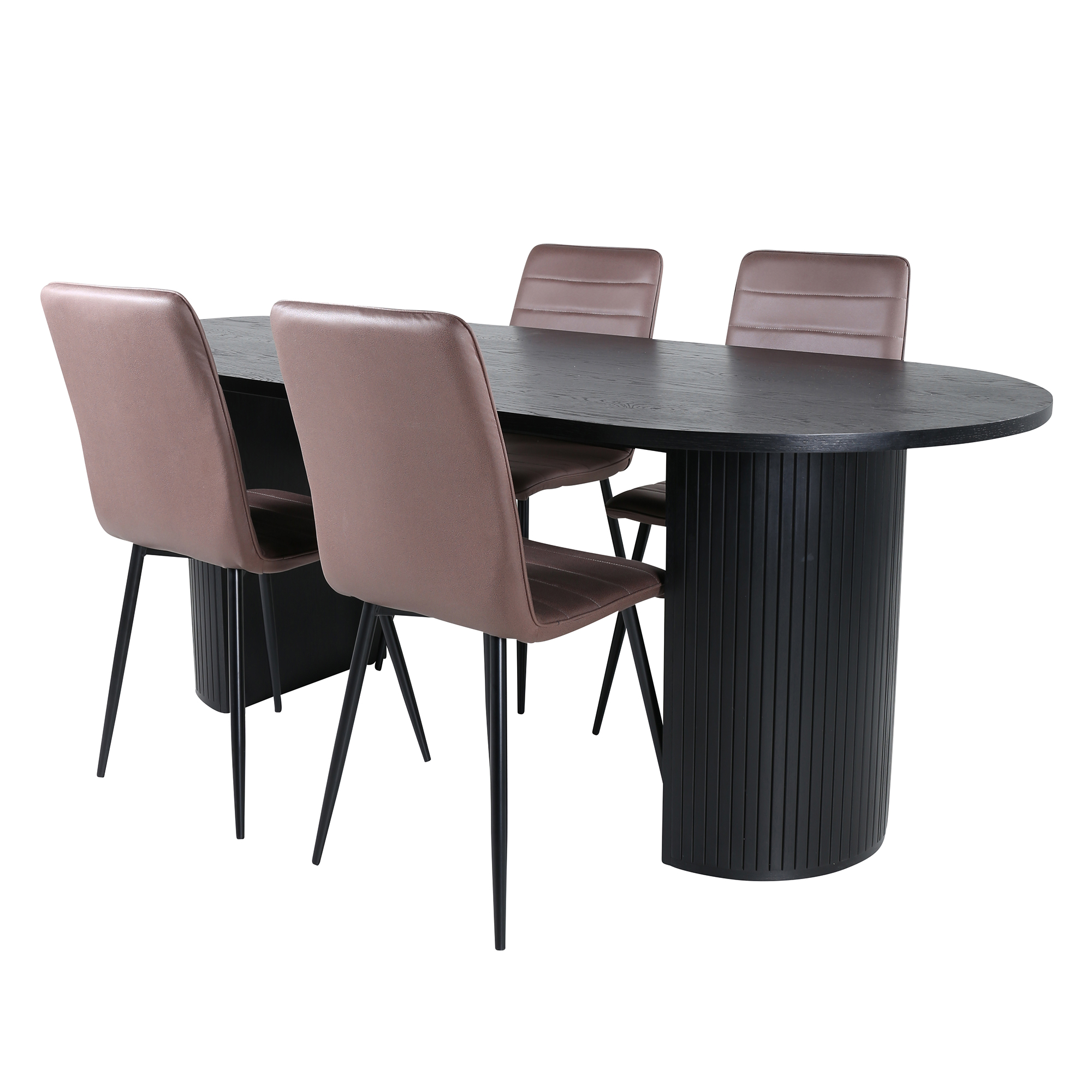 Matgrupp Bianca från Venture Home. Med ett ovalt matbord i svart MDF med faner med svarta bordsben i trä och MDF. Matchas med 4 st Walerina matstolar med svarta stolsben i järn och gråa sitsar i mikrofiber.