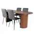 Matgrupp Bianca från Venture Home. Med ett ovalt matbord i valnötsfärgad MDF med faner med valnötsfärgade samt svarta bordsben i trä och MDF. Matchas med 4 st Walerina matstolar med svarta stolsben i järn och gråa sitsar i mikrofiber.
