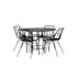 Den här matgruppen passar lika bra i köket som det festliga vardagsrummet! Vårt runda matbord Copenhagen har en elegant, bordsskiva i MDF och ett dekorativt, cylinderformat underrede i metall. Här i kombination med en genomtänkt matstol från serien Dyrön. Stolen är lika stilren som praktisk, tillverkad i plast och stål. Sitsen har integrerade armstöd och en ribbad design i den lätt rundade ryggen. Stolsbenen är stilrent smala och lätt utsvängda i Skandinavisk design. Sitt trendsäkert framöver!