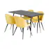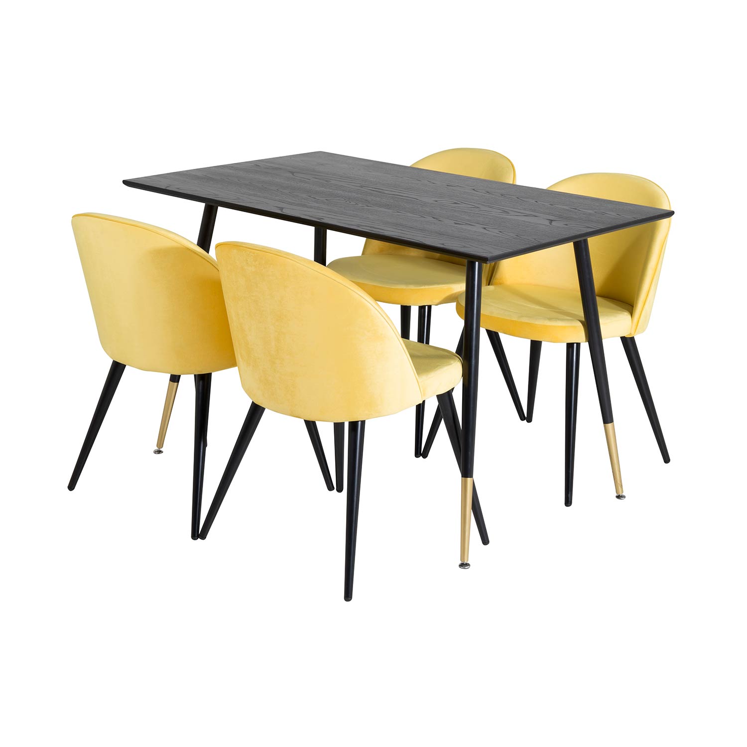 Matgrupp Venture Home Dipp med 4 Velvet Stolar är en modern matgrupp med ett rektangulärt matbord med en stomme och ben i pulverlackerad metall samt med en bordsskiva i fanér med en kärna i MDF. Det medföljer fyra matstolar med en helklädd design. Rygg och sits med mjuk stoppning. Lättare montering krävs.