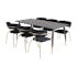 Matgrupp Venture Home Dipp med 6 Arrow Stolar Sammet är en modern matgrupp med ett rektangulärt matbord med en stomme och ben i svart pulverlackerad metall samt med en bordsskiva i svart fanér med en kärna i MDF. Det medföljer sex karmstolar med stomme, ben samt integrerade armstöd i metall. Rundad rygg och sits i stoppat sammetstyg. Lättare montering krävs.