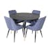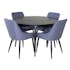 Matgrupp Venture Home Dipp Rund med 4 Plaza Stolar är en elegant matgrupp med ett runt matbord med en stomme och ben i svart pulverlackerad metall samt med en bordsskiva i svart fanér med en kärna av MDF. Det medföljer fyra fåtöljer/matstolar i en helklädd design med ben i svart pulverlackerad metall. Rygg och sits i polyestertyg med mjuk stoppning. Lättare montering krävs.