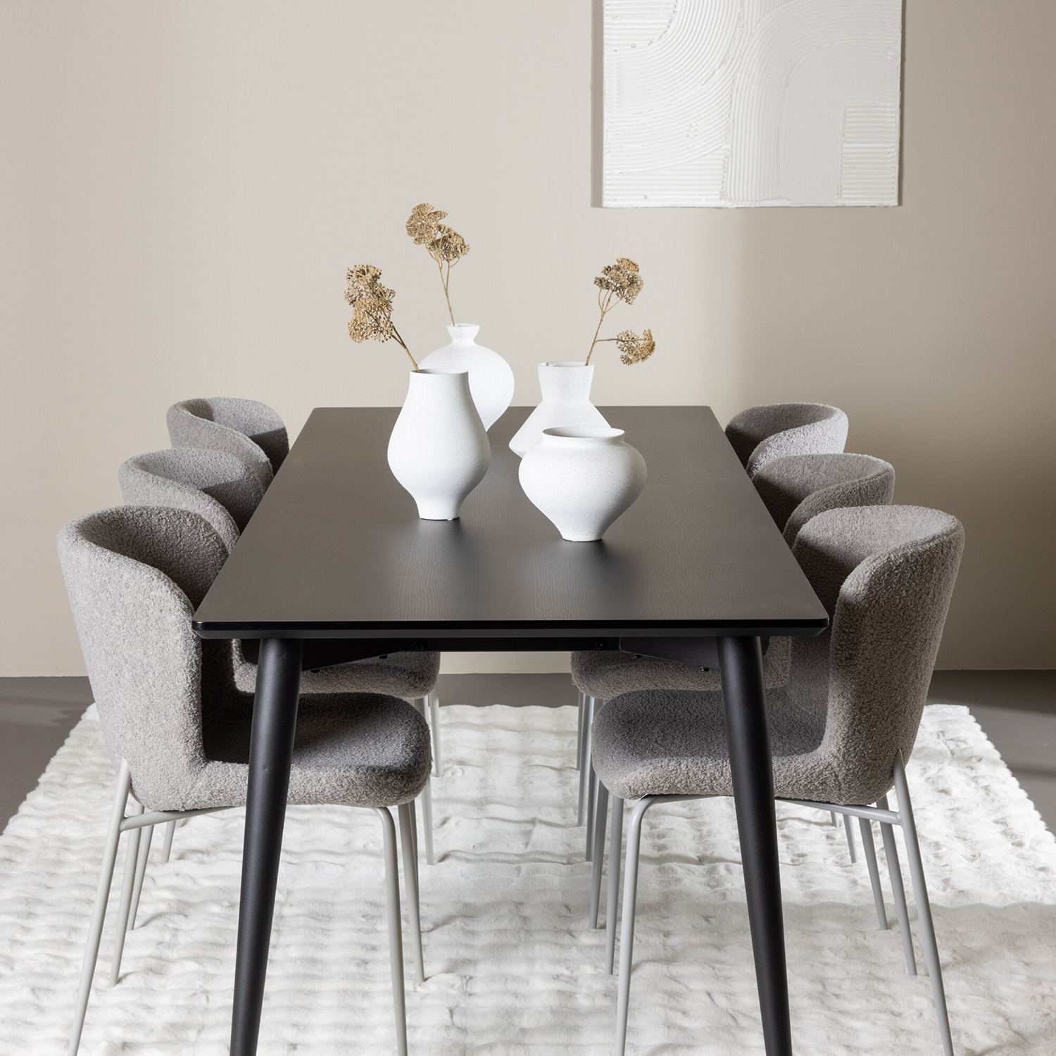 Upptäck den perfekta matgruppen med Modesto matstolen och Ellis matbordet - en kombination som utstrålar både elegans och robusthet för ditt hem. Modesto matstolen är en perfekt kombination av elegans och modernitet, med en sits klädd i mjukt teddymaterial och ben tillverkade av stål. Den eleganta sitsen och benen ger stolen en tidlös och stilren design som passar perfekt in i olika inredningsstilar och lämnar ett bestående intryck i ditt hem.
