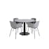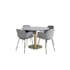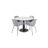 Matgrupp Venture Home Estelle med 4 Colombine Stolar är en elegant matgrupp med ett runt matbord i modern design med trumpetfot i pulverlackerad metall med en bordsskiva i marmor. Det medföljer fyra matstolar med en stomme och ben i pulverlackerad metall. Stolarna har en rygg och sits samt integrerade armstöd i plast. Stolarna levereras med en grå, tunn sittdyna. Lättare montering krävs.