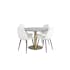 Matgrupp Venture Home Estelle med 4 Pooya Stolar PolyEstelletyg är en stilren matgrupp med ett runt matbord i modern design med trumpetfot i pulverlackerad metall med en bordsskiva i marmor. Det medföljer fyra matstolar i en helklädd design med ben i svart pulverlackerad metall. Stolarna har en rundad rygg och sits i vitt teddy polyEstelletyg med mjuk stoppning. Lättare montering krävs.