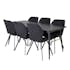 Matgrupp Venture Home Gold med 6 Gemma Stolar är en elegant matgrupp med ett förlängningsbart matbord i svart MDF och svarta bordsben i metall. Det medföljer sex matstolar med svarta stolsben i metall och sitsar i polyester.