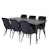 Matgrupp Venture Home Gold med 6 Velvet Stolar Sammet är en elegant matgrupp med ett förlängningsbart matbord i svart MDF och svarta bordsben i metall. Det medföljer sex matstolar med stolsben i metall och sitsar i sammet.