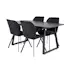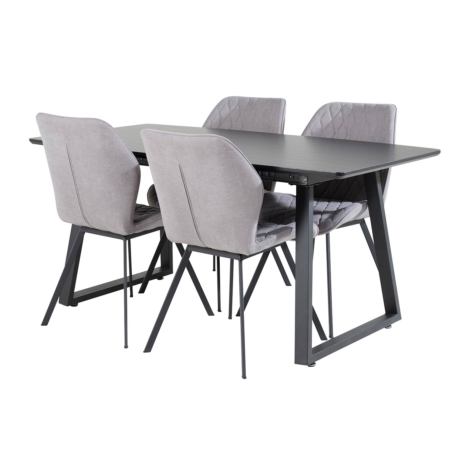Matgrupp Venture Home Ina med 4 Geneva Stolar är en stilren matgrupp med ett förlängningsbart matbord i MDF med svarta bordsben i metall. Det medföljer fyra matstolar med svarta stolsben i metall och sitsar i polyester.