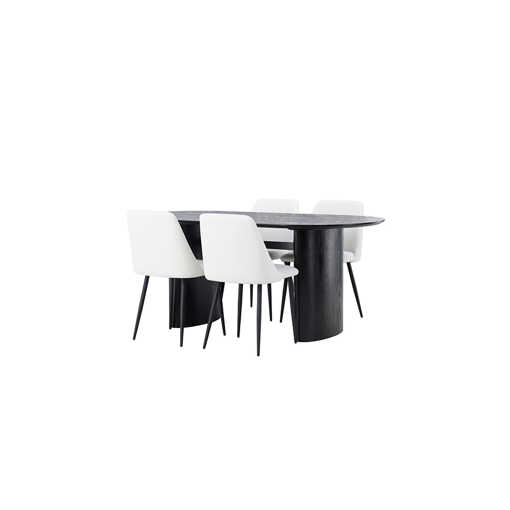 Inred vardagsrummet lyxigt och bekvämt! Det ovala matbordet Isolde i kulör har en modern utformning med en oval bordskiva i MDF och robust stomme som ger ett stadigt intryck. Det levande materialet ger smakfull rörelse till blickfånget. Här i perfekt kombination med matstolar från serien Night. Stolen har en helklädd sits i sammetstyg och ben i matchande kulör. En otrolig kombination helt enkelt!