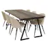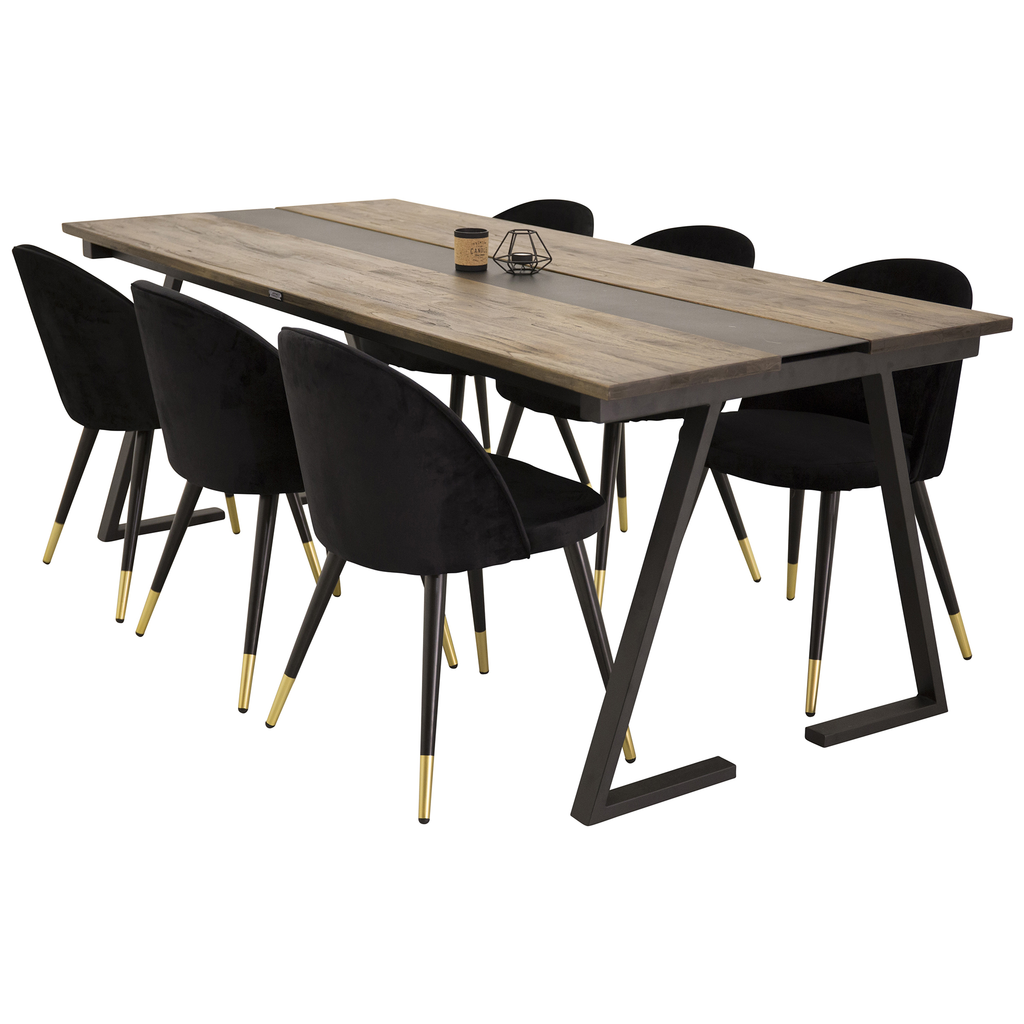 Matgrupp Jane från Venture Home. Matbord i naturfärgad teak med svarta bordsben i metall. Matchas med 6 st Valentina matstolar med stolsits i sammet och stolsben i metall.