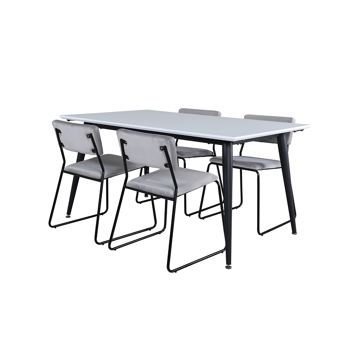 Matgrupp Venture Home Jolie med 4 Kungshamn Stolar Sammet har ett förlängningsbart matbord i HPL och MDF med bordsben i järn. Det ingår 4 st Kungshamn matstolar med stolsben i järn och sitsar i sammet.