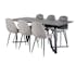 Matgrupp Venture Home Madde med 6 Pobbie Stolar Sammet är en stilren matgrupp med ett matbord i svart MDF med svarta bordsben i metall. Det medföljer sex matstolar med svarta stolsben i metall och sitsar i sammet.