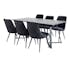 Matgrupp Venture Home Madde med 6 Vera Stolar Sammet är en stilren matgrupp med ett matbord i svart MDF med svarta bordsben i metall. Det medföljer sex matstolar med svarta stolsben i metall och sitsar i sammet.