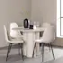 De fyra Polar-stolarna kompletterar bordet perfekt med sina eleganta sitsar klädda i polyester teddy. Dessa stolar erbjuder både komfort och stil, vilket gör dem idealiska för långa, njutbara middagar med familj och vänner. Deras moderna design med hög ryggstöd och mjuka sitsar ger ditt matrum en sofistikerad och samtida touch.