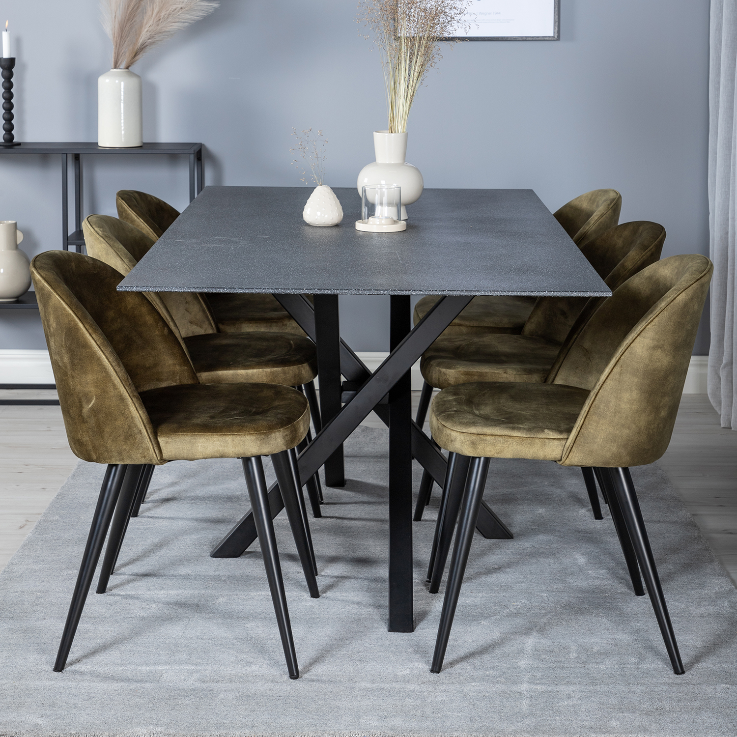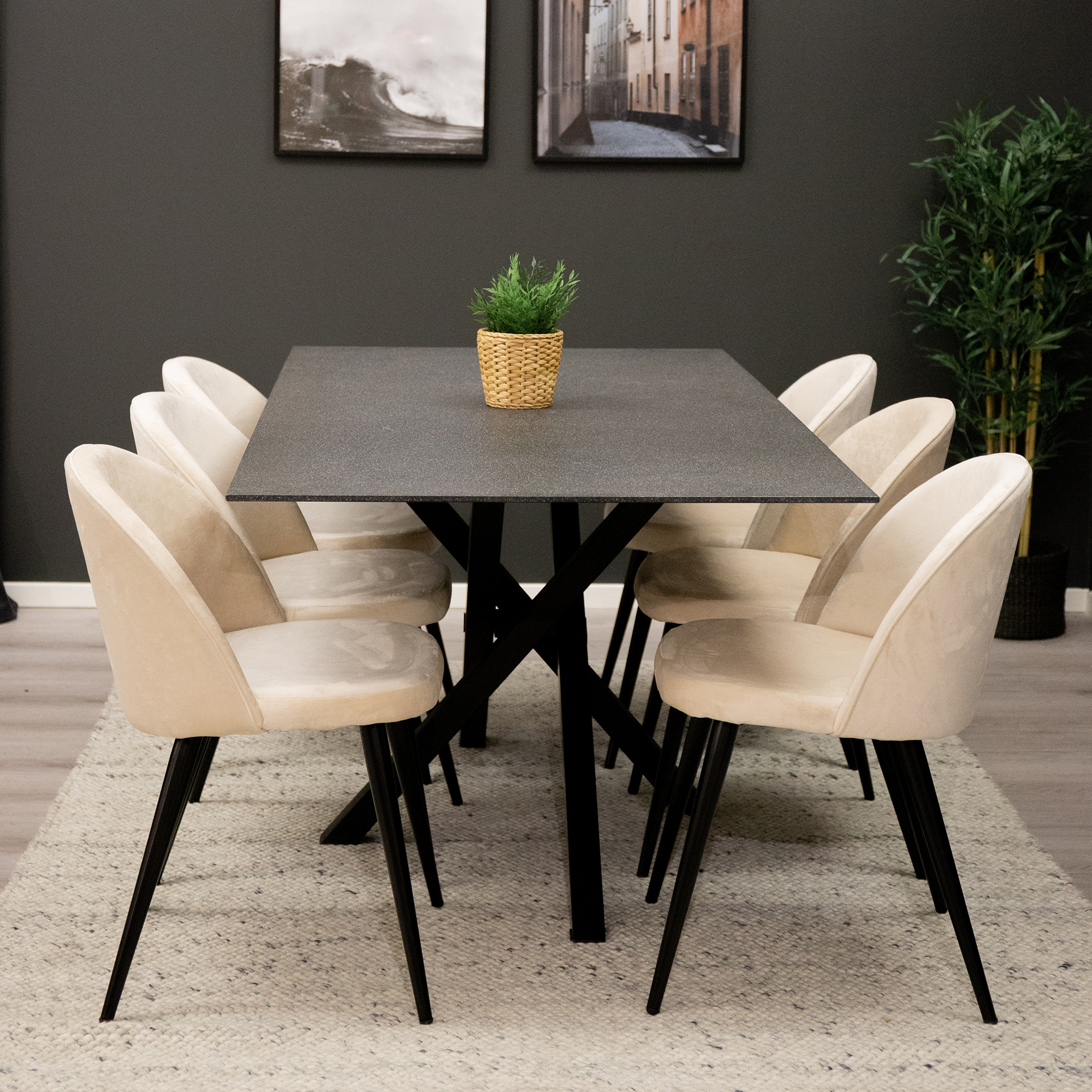 Matgrupp Venture Home Piata med 6 Valentina Stolar är en elegant matgrupp med ett vackert bord och sex stolar i bekväm sammet.