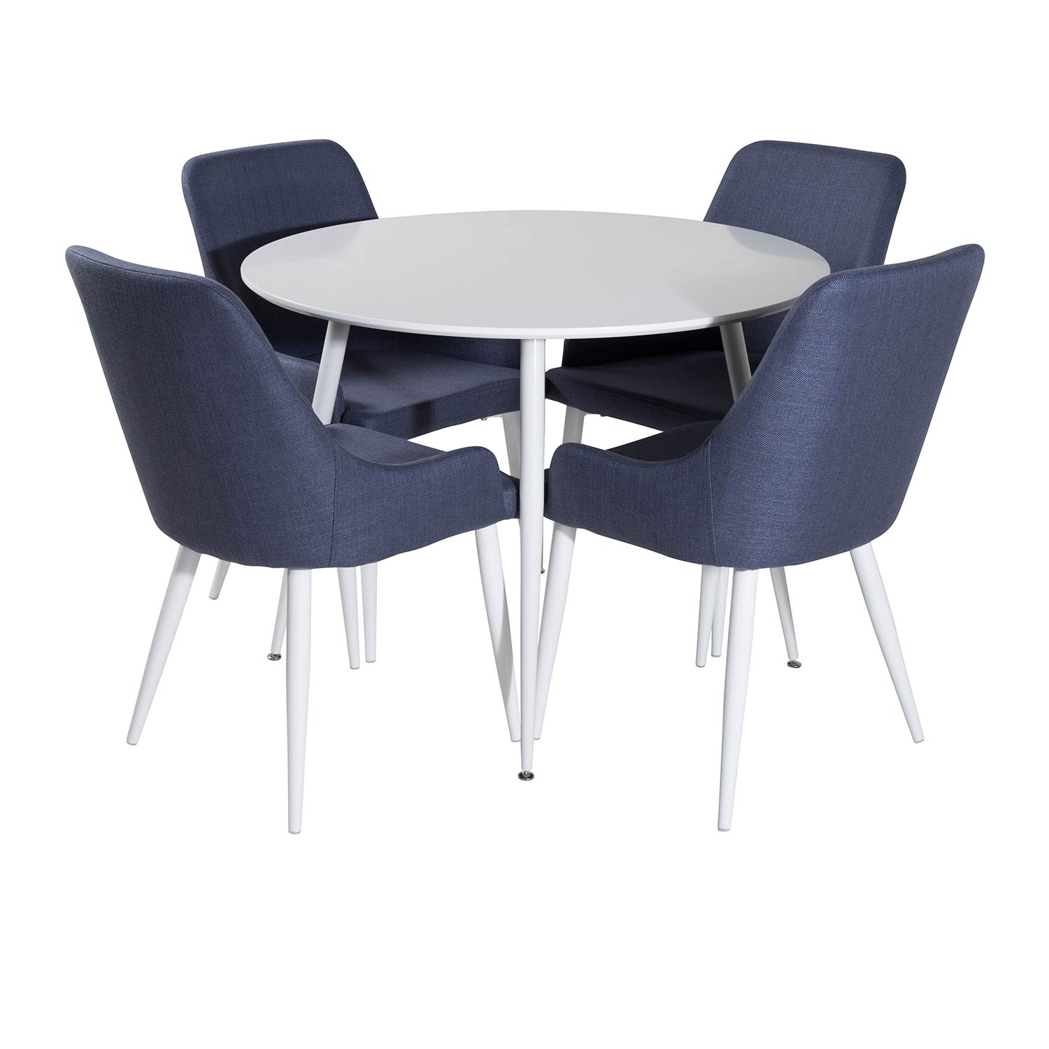 Matgrupp Venture Home Plake med 4 Plake Stolar Runt är en matgrupp med ett runt matbord med ben i metall och en bordsskiva av MDF. Det medföljer fyra fåtöljer/matstolar i en helklädd design med ben i pulverlackerad metall. Stolarna har en rygg och sits i polyestertyg med mjuk stoppning. Lättare montering krävs.
