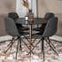 Matgrupp Venture Home Plake med 4 Pobbie Stolar Design med Snurrfunktion Konstläder är en matgrupp med ett runt matbord med ben i metall och en bordsskiva av MDF. Det medföljer fyra matstolar i en helklädd design med snurrfunktion, stomme och ben i svart pulverlackerad metall med en lätt rundad rygg och sits i stoppat konstläder med dekorsöm. Lättare montering krävs.