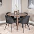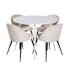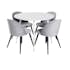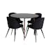 Matgrupp Venture Home Plake med 4 Valentina Stolar Sammet Runt är en matgrupp med ett runt matbord med ben i metall och en bordsskiva av MDF. Det medföljer fyra matstolar med svarta stolsben i metall och sitsar i sammet.