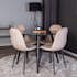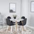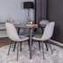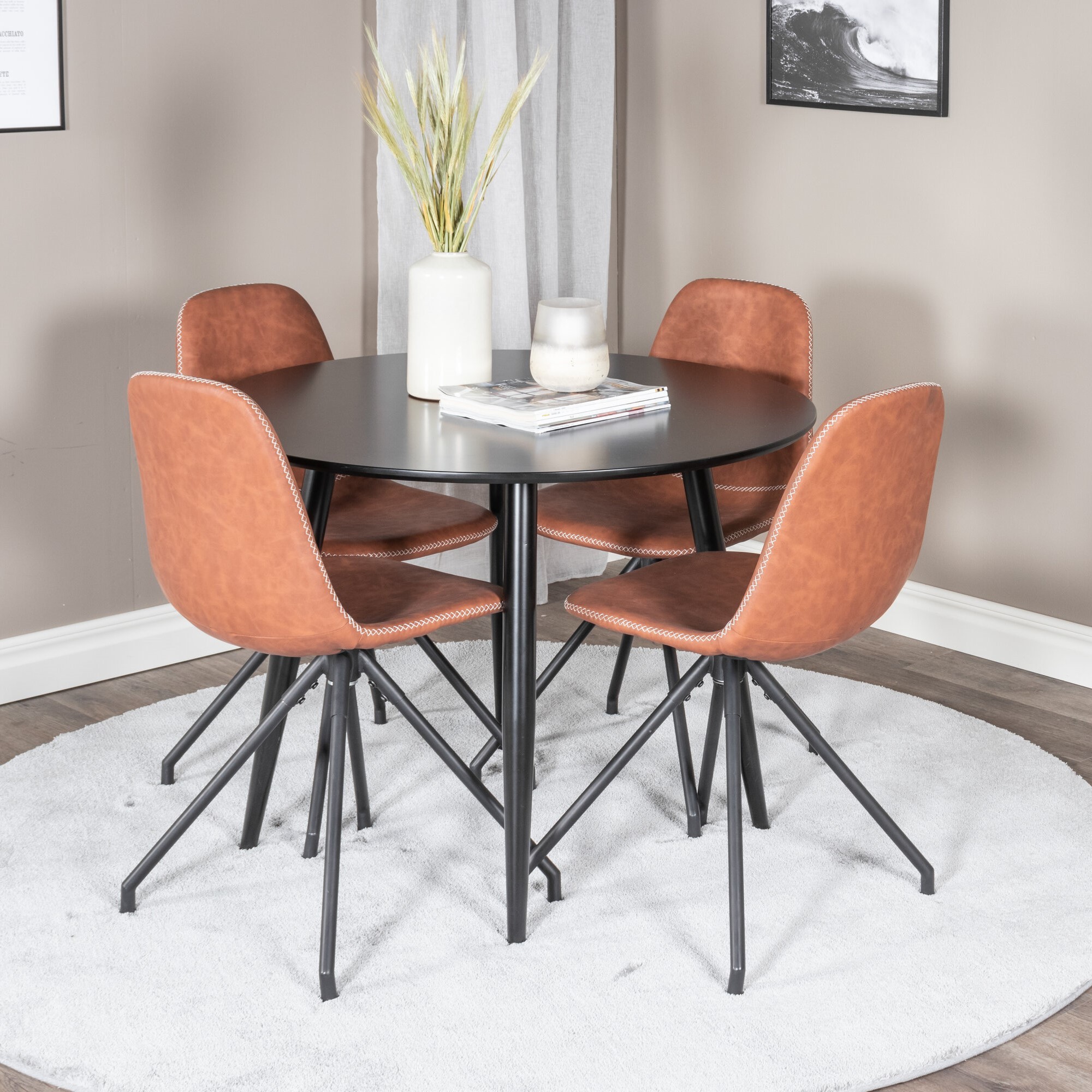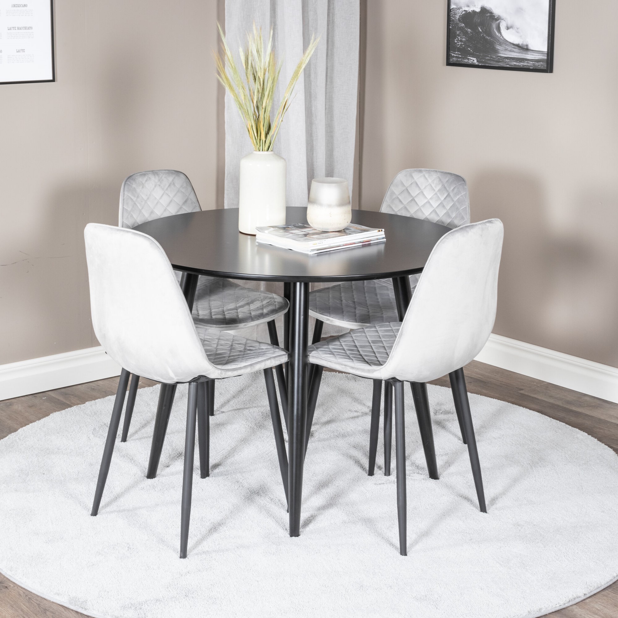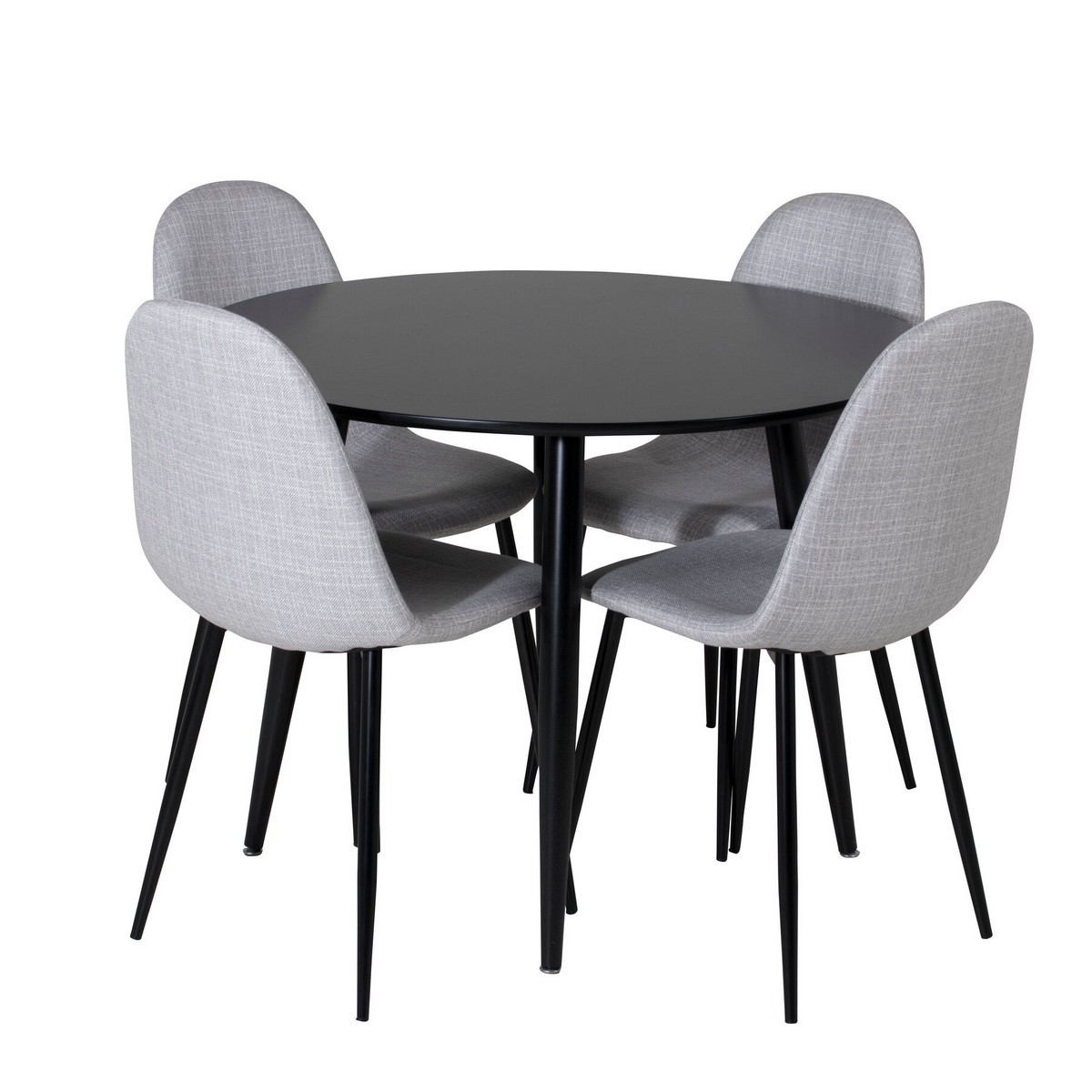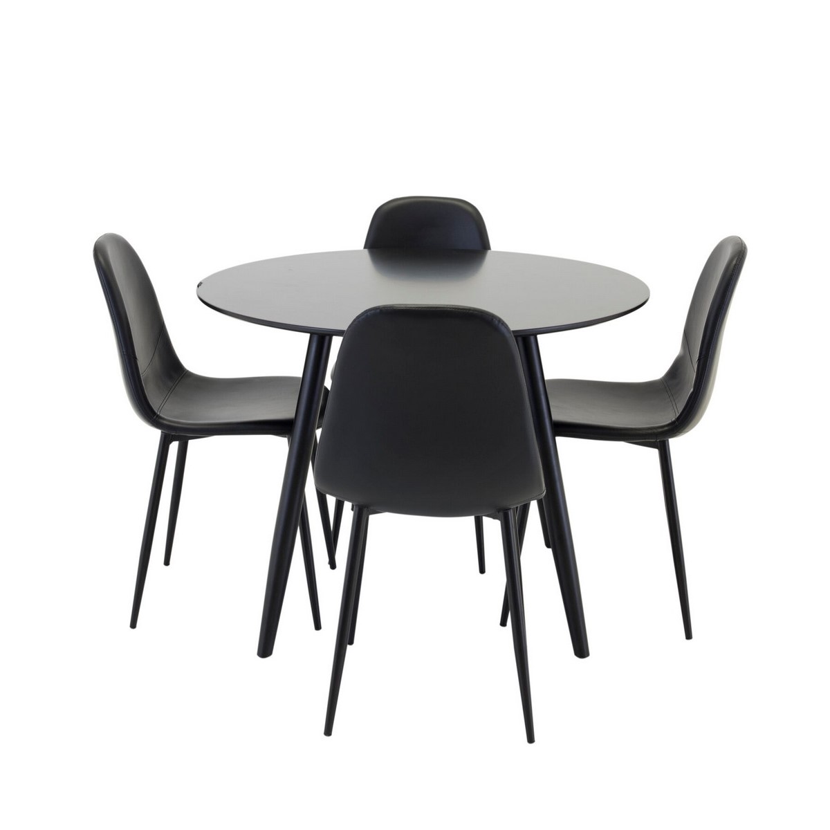 Med sin eleganta svarta bordsskiva passar Venture Homes runda matbord Plaza perfekt till både vardags och fest! Här tillsammans med de sittvänliga matstolarna Polar i läcker färgskala.
