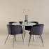 De fyra medföljande Berit-stolarna kompletterar bordet på ett utmärkt sätt. Stolar är klädda i mjuk manchester, vilket ger en behaglig och inbjudande sittupplevelse. Manchester-tyget är känt för sin slitstyrka och komfort, vilket gör att du och dina gäster kan sitta bekvämt under långa måltider och samtal. Stolarnas svarta färg skapar en stilfull kontrast mot det grå bordet, vilket ger ditt matrum en modern och sofistikerad atmosfär.