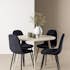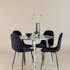 De fyra Polar-stolarna kompletterar bordet perfekt med sina eleganta sitsar klädda i svart sammet. Dessa stolar erbjuder både komfort och stil, vilket gör dem idealiska för långa, njutbara middagar med familj och vänner. Deras moderna design med hög ryggstöd och mjuka sitsar ger ditt matrum en sofistikerad och samtida touch.