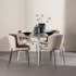 De fyra Modesto-stolarna kompletterar bordet perfekt med sina eleganta sitsar klädda i boucle och stilrena ben. Dessa stolar erbjuder både komfort och stil, vilket gör dem idealiska för långa, njutbara middagar med familj och vänner. Deras moderna design med hög ryggstöd och mjuka sitsar ger ditt matrum en sofistikerad och samtida touch.