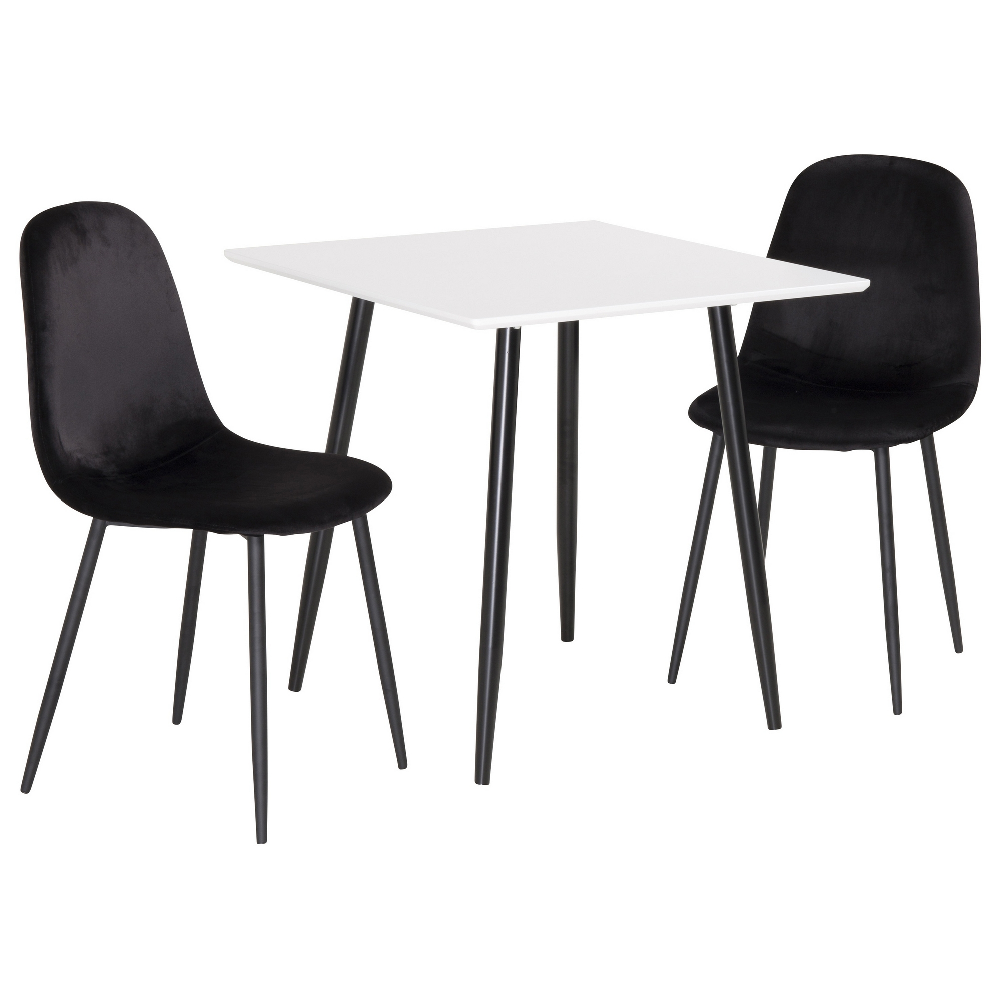 Matgrupp Venture Home Pobbie med 2 Stolar är en modern matgrupp med ett fyrkantigt bord och två stolar klädda i sammet. Lättare montering krävs.