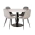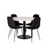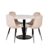 Matgrupp Venture Home Roxanna Vit Bord med 4 Pobbie Stolar Sammet är en elegant matgrupp med ett runt matbord med en vit terazzo-bordsskiva och svart underrede i metall samt fyra Pobbie-matstolar i sammet.